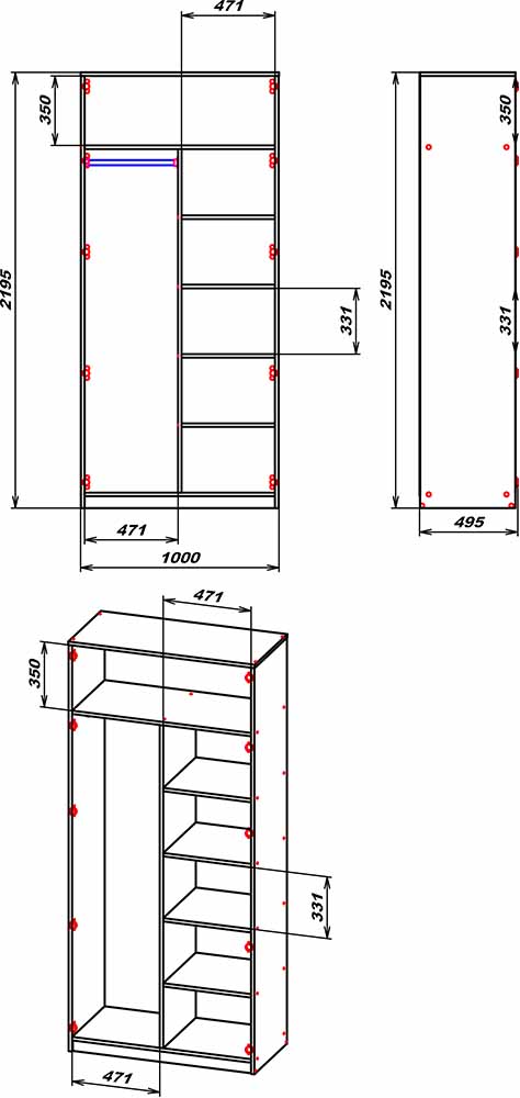 Розміри:(Ш/В/Г) : 1000/2195/495мм