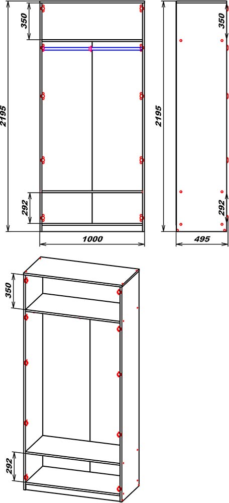 Розміри:(Ш/В/Г) :1000/2195/495мм