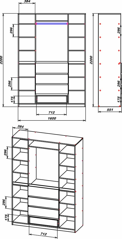 Розміри:(Ш/В/Г) : 2200/1600/551мм
