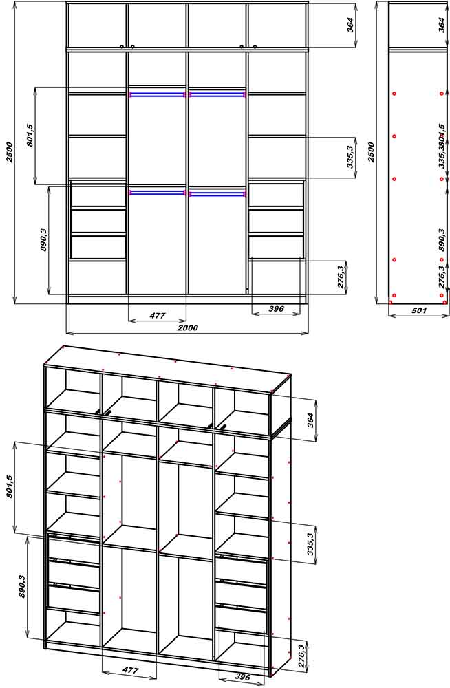 Розміри:(В/Ш/Г) : 2500/2000/501мм