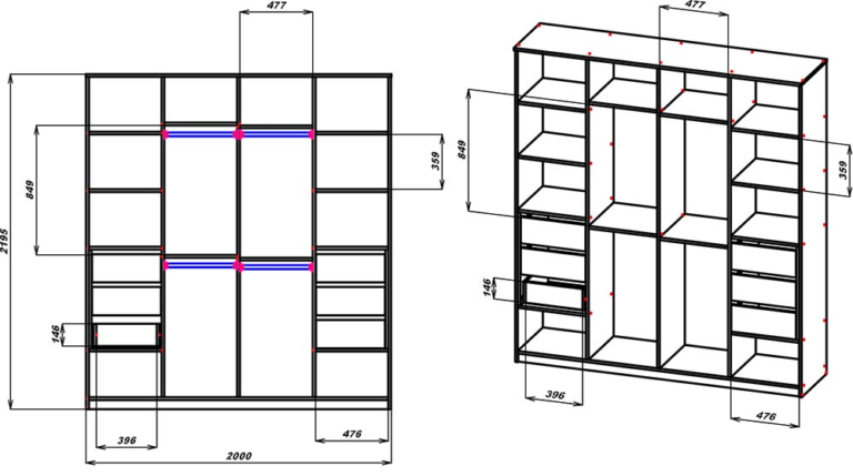 Розміри:(Ш/В/Г) : 2000/2195/500мм