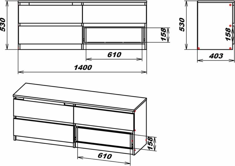 Розміри:(В/Ш/Г) : 530/1400/400мм
